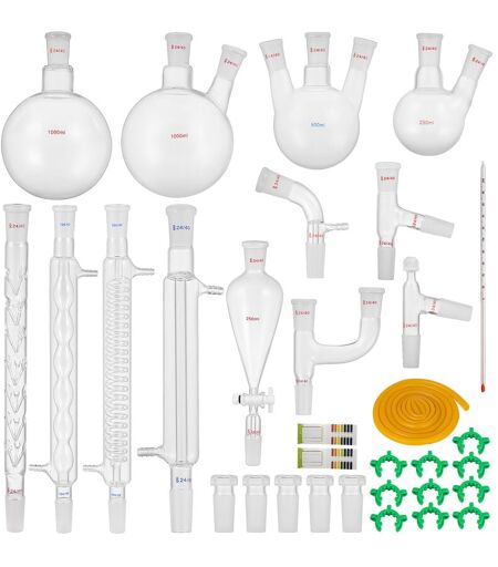 VEVOR Laboratoire Essentiel Distillateur D'huile Chimie Organique Ensemble Verrerie Ensemble Complet Entonnoir De Separation Joint 24/40 32PCS