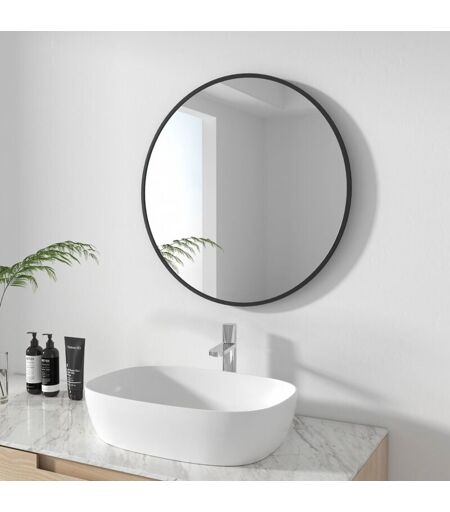 Meykoers Miroir Mural Rond 70cm Miroir simple de salle de bain aver Cadre en métal noir mat