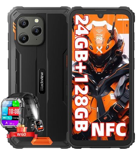 Blackview BV5300 Plus Smartphone Incassable Android 13 6,1" 128 Go 6580mAh NFC Orange avec Smartwatch Blackview W60