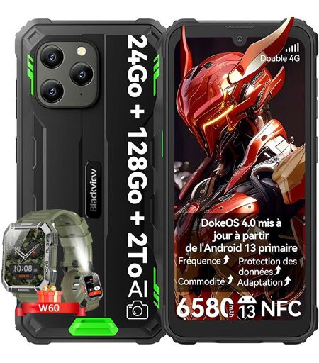 Blackview BV5300 Plus Smartphone Incassable Android 13 6,1" 128 Go 6580mAh NFC Vert avec Smartwatch Blackview W60