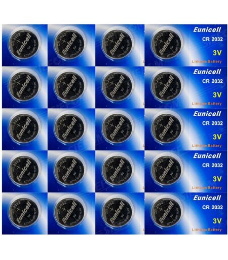 Lot de 20 piles CR2032 au lithium 3 volt de marque Eunicell (4 x 5 piles) ...