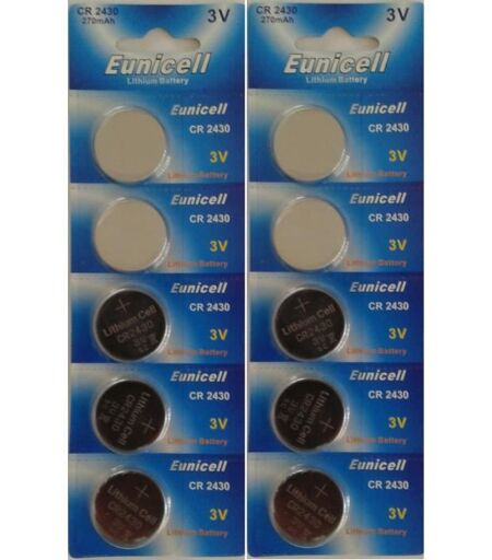 2 blisters de 5 piles neuves CR2430 EUNICELL 3V équivalence 2430, K2430L, DL2430, 5011LC, E-CR2430 ...