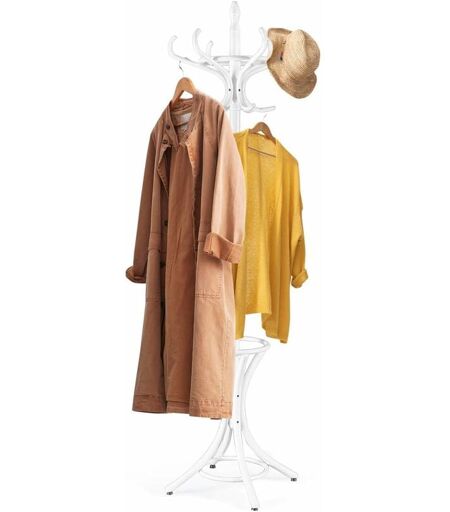 Porte-Manteau sur Pied, 12 Crochets en Bois Massif, 51 x 51 x 184CM Support, Manteau/Parapluie/Chapeau, au Style Industriel(Blanc) - Goplus