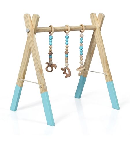 Le plus important est de veiller à ce que tout soit sûr et confortable pour les bébés. Notre jeu d’éveil est composé à 100% de matériaux écologiques. Ce portique d’éveil est idéal pour leur développement et leur motricité. Lorsqu'il n'est pas utilisé, il peut être facilement démonté et rangé pour optimiser l’espace. Attributs: 【Matériau naturel】 Composé de pin de qualité supérieure, ce jeu d’éveil est idéal pour les nouveau-nés. En effet, le bois possède des propriétés antibactériennes. Vos enfants pourront donc jouer sans crainte. 【Accessoires】 Avec ses 3 accessoires suspendus, votre bébé peut à la fois jouer et s’éveiller tout en douceur. 【Construction stable】 Le cadre de support est conçu en forme triangulaire, ce qui le rend plus stable et plus sûr. Chaque côté est relié à un morceau de corde épaisse, ce qui empêchera efficacement tout effondrement accidentel et protégera en même temps votre bébé contre les blessures. 【Conception pliable】 Sa fonction de pliage offre un grand espace de rangement qui est pratique lorsqu'elle n'est pas utilisée ou lorsque le bébé grandit. Sa taille compacte permet de gagner de l'espace. Il est également facile à détacher, de sorte que vous pouvez changer ou ajouter des jouets suspendus pour que bébé puisse jouer à différents jeux. 【Design moderne et tendance】 Conçu dans un style nordique simple aux couleurs subtiles, ce centre d'activités pour bébés est facile à coordonner avec des pièces de styles différents et rehaussera parfaitement le goût général. Il sera un choix parfait, que ce soit pour un nouveau-né ou pour une chambre d'enfant. Caractéristiques: Bois naturel et matériaux écologiques Jouets aux formes modernesPromouvoir la motricité et l’éveil de votre bébéConception triangulaire Conception pliableFacile à monter et à démonter Cadeau de naissance idéal ...