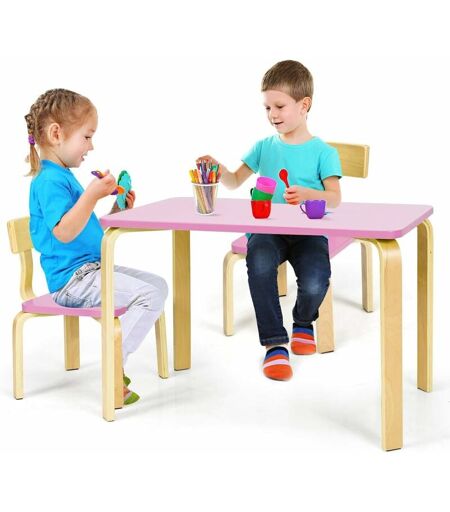 COSTWAY Ensemble Table et Chaise pour Enfant, Inclus 1 Table et 2 Chaises, Bonne Protection En Bois Courbé, Idéal pour l’Intérieur