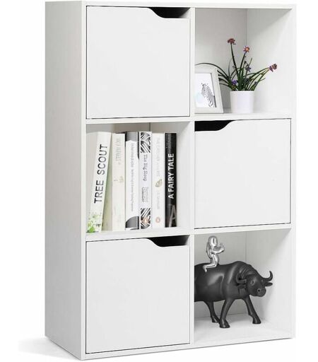 GOPLUS Bibliothèque Meuble de Rangement 6 Compartiments 60x29x90CM-Etagère de Rangement avec 3 Portes-Montage Facile-Ideal pour Bureau/Salon/Chambre