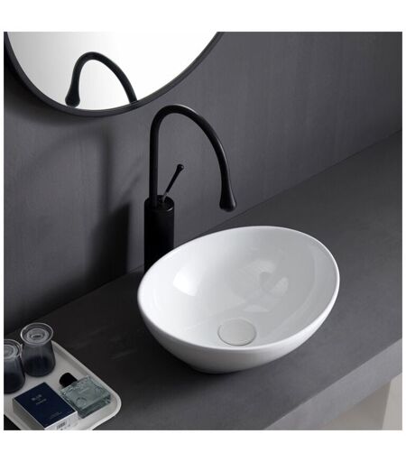 Eridanus - Vasque Poser Lavabo de salle de bain Céramique Ovale Blanc - 41 x 33,5 x 15cm, ERI-VB-041