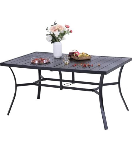 PHIVILLA 150 90cm Garden Table for 6 Person Rust Proof Steel Frame and Parasol Hole Outdoor Furniture Garden Dining Table Maintenance Free Black