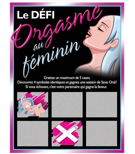 Les Jeu de Cartes à Gratter Le Défi Orgasme au Féminin de Ozzé est l'occasion d'offrir un cadeau drôle et sexy à votre partenaire. Grattez un maximum de 5 cases. Découvrez 4 symboles identiques et gagnez une session de sexe Oral. Si vous échouez, c'est votre partenaire qui gagne la faveur ! Mettez de la folie dans votre quotidien avec cette carte à gratter Le Défi Orgasme au Féminin ! ...