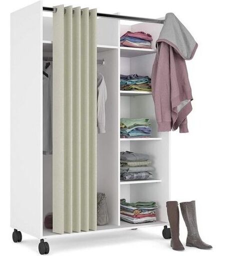ABITARE Dressing 100x160 cm blanc mat avec rideau et quatre étagères réglables - Inari