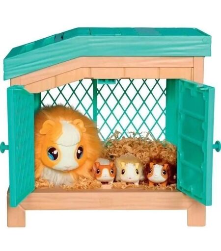 Mama Surprise : Une Expérience Magique et Interactive avec ta Maman Cochon d¿Inde Mama Surprise est une maman cochon d'Inde interactive accompagnée de son clapier de luxe. Prends soin d'elle et installe-la confortablement dans son clapier. Découvre un bébé cochon d'Inde et son kit de soins spécial. Collectionne trois bébés surprises pour composer ta famille de cochons d'Inde. Prends soin de ta maman cochon d¿Inde Mama Surprise apprend aux enfants à s'occuper d'un animal de compagnie ! Prends soin de la maman en brossant sa fourrure, en la caressant et en lui donnant à manger du céleri, pour une expérience aussi vraie que nature. Au fur et à mesure que tu t¿en occupes, elle exprimera son amour et son coeur s¿illuminera ! C'est magique : la maman attend 3 bébés ! Lorsque le coeur de la maman s'illumine, il est temps de la remettre dans son clapier. Elle est sur le point de donner naissance à trois bébés ! Tu n¿as plus qu¿à attendre leur arrivée, qui sera une surprise. Observe le coeur de la maman pour le voir s¿illuminer et replace-la dans son clapier pour qu¿elle mette au monde ses bébés comme par magie ! Pomponne les bébés ! Chaque adorable bébé vient avec son propre kit de soins et des accessoires à thème pour que tu puisses le pomponner. Plus de 20 sons et réactions La maman cochon d'Inde et ses bébés sont aussi vrais que nature ! Ils réagissent avec plus de 20 sons et actions lorsque tu joues avec eux et t¿en occupes. Contient : 1 cochon d'Inde 1 clapier 1 peigne 1 céleri 3 bébés 3 kits de soins (chacun contenant 2 accessoires, des élastiques à cheveux et 1 acte de naissance) 1 litière en papier 1 manuel d¿utilisation ...