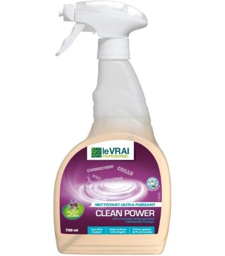 Clean Power Prêt à l'Emploi 750ml Action Pin Le VRAI PROFESSIONNEL Clean Power est un nettoyant ultra-puissant. Il agit très efficacement sur les taches les plus tenaces : encres. feutres indélébiles. colles. correcteurs. Il convient pour de multiples surfaces. même les plus fragiles (bois. stratifiées. inox). Il sʼutilise dans le secteur tertiaire (bureaux. comptoirs dʼaccueil). en collectivité (crèches. écoles. garderies) et dans tous types de commerces (nettoyage en profondeur des étagères de linéaires. des caddies). Elimine tous types de taches même les plus tenaces. Sʼutilise sur toutes les surfaces même délicates. Facile dʼutilisation car prêt à lʼemploi.COLIS DE 6 FLACONS ...