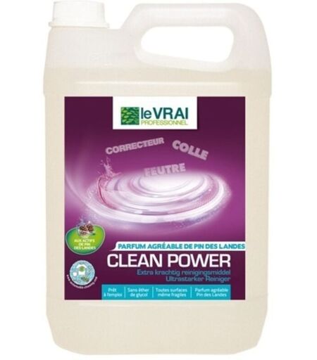 Clean Power Nettoyant Ultra Puissant Action Pin Le VRAI PROFESSIONNEL Clean Power est un nettoyant ultra puissant. Il agit très efficacement sur les taches les plus tenaces : encres. feutres indélébiles. colles. correcteurs. Il convient pour de multiples surfaces. même les plus fragiles (bois. stratifiées. inox). Il sʼutilise dans le secteur tertiaire (bureaux. comptoirs dʼaccueil). en collectivité (crèches. écoles. garderies) et dans tous types de commerces (nettoyage en profondeur des étagères de linéaires. des caddies). Elimine tous types de taches même les plus tenaces. Sʼutilise sur toutes les surfaces même délicates. Facile dʼutilisation car prêt à lʼemploi ...