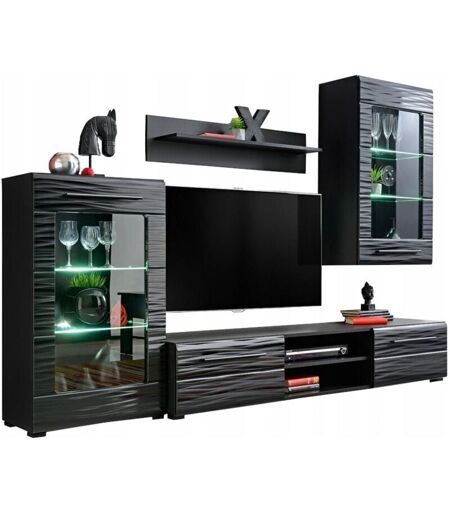 Dusine - Ensemble tv madmax Noir Laqué Effet 3D avec led pour tv Hifi box et consoles