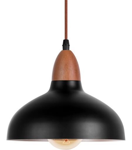 NORCKS Suspension Lustre Rétro E27 Lustre En Bois, Abat-Jour En Métal Ø19CM, Plafonnier Moderne Pour Salle à Manger Chambre Café, Noir