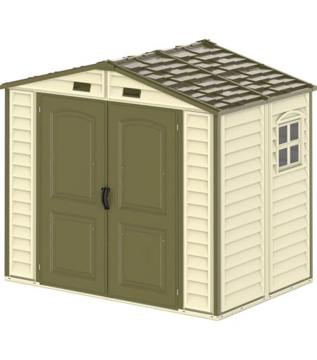 Duramax - Abri pvc Woodstyle premium - 4,13m² - Kit fondation + 1 fenêtre - Beige