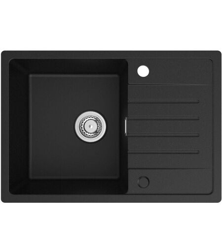 Cecipa - Evier Noir en Granit, Evier Cuisine 1 Bac avec Egouttoir 65 x 45 cm, Lavabo Cuisine 1 bac, Évier Cuisine Installation Réversible, avec