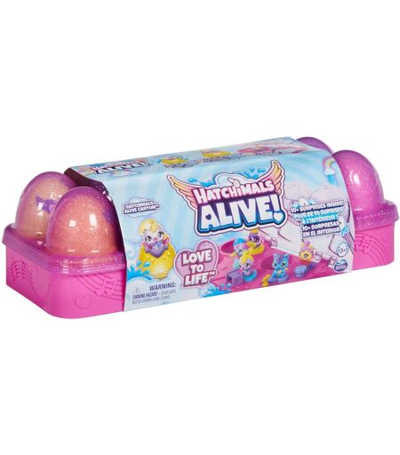 Boîte de 5 ¿ufs et accessoires Hatchimals : verse de l'eau dans l'¿uf pour le faire éclore et découvrir ta figurine Hatchimals. Coffret comprenant 1 boîte de rangement, 5 ¿ufs, 5 Hatchimals, 1 biberon, 2 instruments de musique et 5 tétines. Dès 6 ans ...