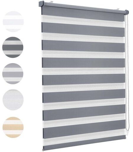 SEKEY Store enrouleur zébré jour nuit 75 x 100 cm Gris foncé Installation sans perçage occultants protection solaire