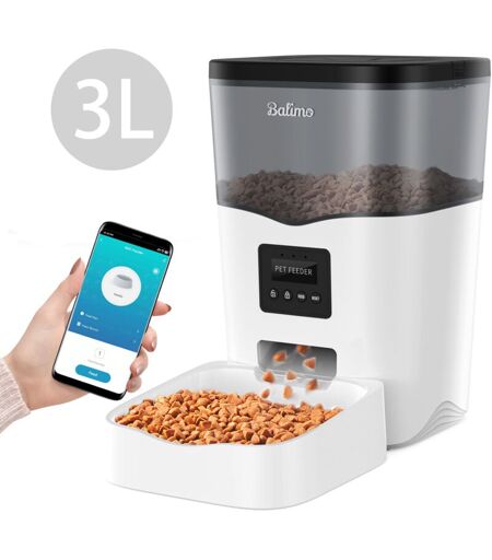 BALIMO 3L 2,4G WiFi Distributeur Croquettes Chats et Chiens, Automatique avec Minuterie et télécommande app Max, 1-10 Repas par Jour