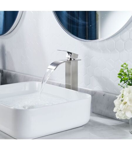 Forious - Mitigeur de Lavabo Nickelé Haut Robinet Salle de Bain Cascade Mitigeur pour Vasque Haut de Gamme Design Moderne