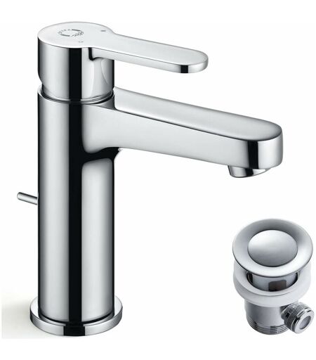 Cecipa - Robinet Salle Bain Chromé, Robinet avec Tirette et Bonde, Mitigeur Lavabo, Hauteur du Bec 112,5mm, Robinet Lavabo Salle de Bain Simple,