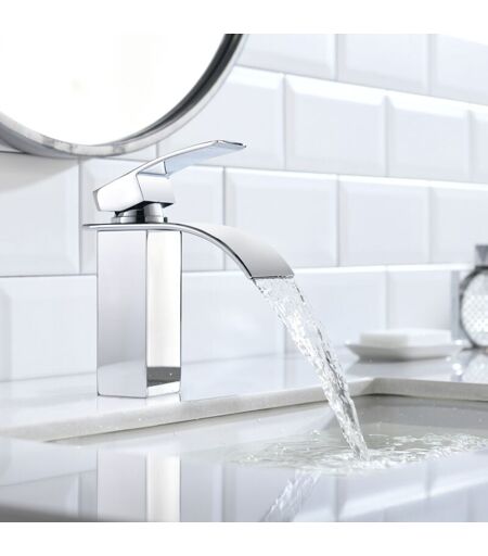 CECIPA Robinet de lavabo de salle de bain cascade, mitigeur de lavabo à poignée unique, eau chaude et froide, chromé