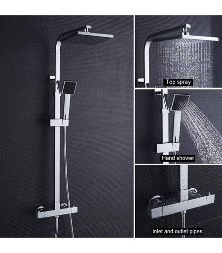 AURALUM Colonne de Douche Thermostatique Système de Douche Carré avec Mitigeur Thermostatique Ensemble de Douche Épais en Laiton Chromé pour Salle de Bains