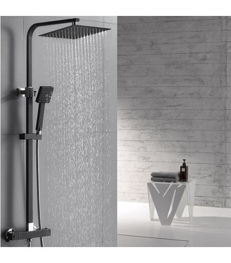 AURALUM Ensemble de Douche Thermostatique Noir Colonne de Douche Mitigeur Thermostatique Colonne Hydromassante avec Douchette Design Moderne pour Baignoire