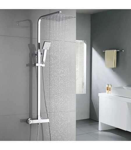 AURALUM Colonne de Douche Thermostatique Chromé 2 Fonctions Ensemble de Douche avec Douchette de tête ultra-mince de 10 pouces, Haute Réglable pour Salle de