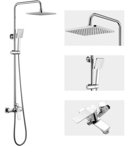 Description générale La colonne de douche Auralum est un système de douche élégant et fonctionnel, parfait pour transformer votre salle de bain. Avec un mitigeur noir et une hauteur réglable de 90 à 124 cm, elle s'adapte facilement à vos besoins. Ce système comprend une douche de tête de 9 pouces (22,5 x 22,5 cm) et une douchette à main, offrant une expérience de douche agréable et relaxante. Spécifications techniques Dimensions de la douche de tête : 9 pouces (22,5 x 22,5 cm) Hauteur réglable : 90-124 cm Matériaux : Laiton chromé, acier inoxydable et ABS Longueur du flexible : 150 cm Norme de connexion : G1/2 Compatibilité et accessoires Compatible avec 99 % des robinets standards sur le marché Inclus : 1 mitigeur, 1 douche de tête, 1 douchette à main, 1 flexible de 1,5 m, 1 barre de douche en acier inoxydable, instructions d'installation et accessoires Installation Ce système de douche est facile à installer grâce à des instructions détaillées fournies. Même si vous êtes un ...