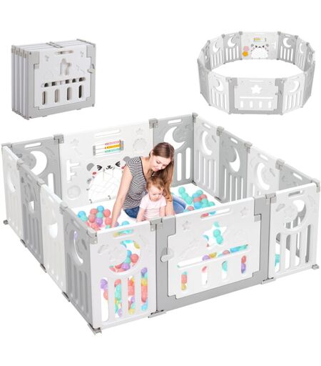 KEEPBUYING Parc bébé Plastique 12+2 Panneaux pour Enfants - Clôture Pliant de Protection Bébé Enfants - 150 x 150 x 62cm - Gris