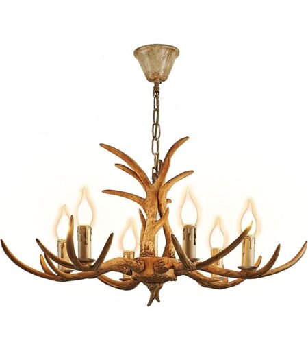Senderpick - Luminaires de plafond avec 6 supports de lampe en spirale E14, faux plafonnier en bois de cerf, lustre de style vintage, suspensions