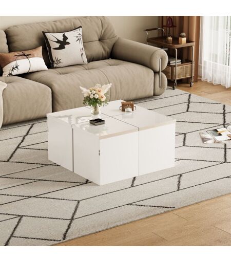 Tanant - Table basse, plateau blanc brillant, avec rangement, à monter soi-même, table d'appoint de salon, design moderne, 81 x 81 x 40 cm - Blanc