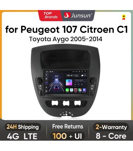 Junsun-Autoradio Android Auto Carplay, Systèmes Intelligents, Écran RDS Plug and Play, KIT 107, Cristaux en C1, Toyota Aygo, 7"