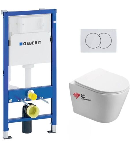 Geberit - Pack wc Bati-support + wc Swiss Aqua Technologies Infinitio sans bride + Plaque Blanc alpin (InfinitioGeb1)