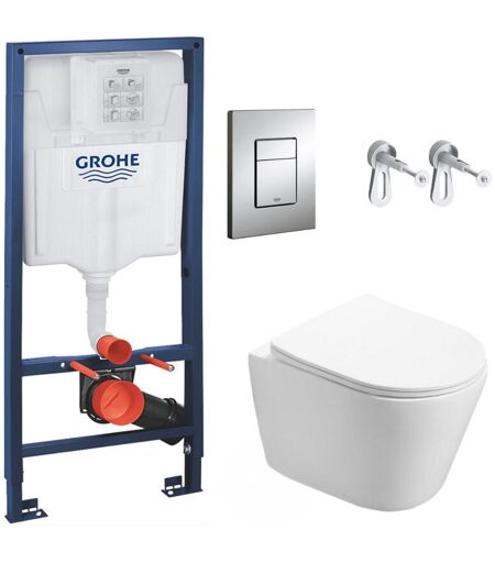 Grohe - Pack wc Bâti-support + wc Swiss Aqua Technologies Infinitio sans bride, fixation invisible + Plaque chrome