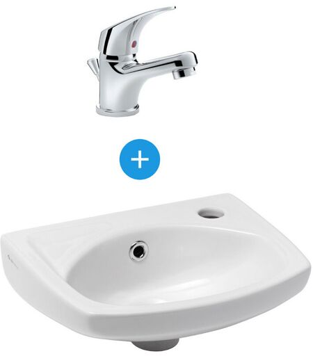 Siko Lave-mains Siko avec trop plein, 35x28 cm + Mitigeur Jika Talas (Groupe Roca) avec tirette et vidage, Chrome (EUR913H3111)