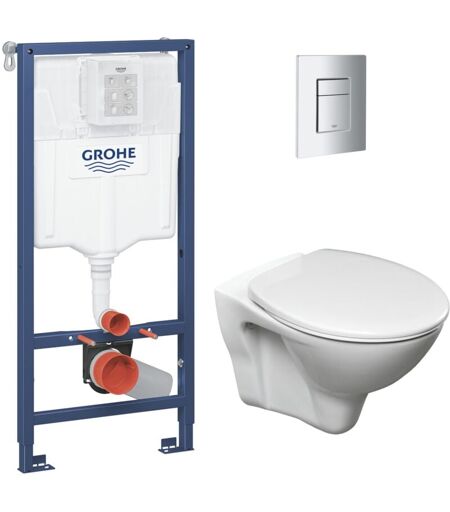 Pack wc Bâti-support Rapid sl + Cuvette suspendue Cersanit S-line avec bride + Abattant + Plaque Chrome ( S-LinePro-1) - Grohe