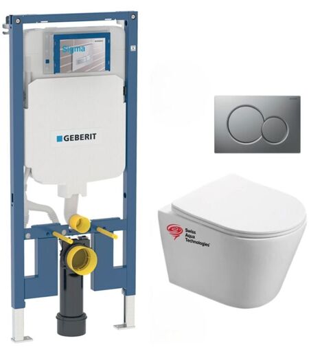 Geberit - Pack wc Bati-support extra-plat + Cuvette Swiss Aqua Technologies sans bride fixations invisibles + Plaque