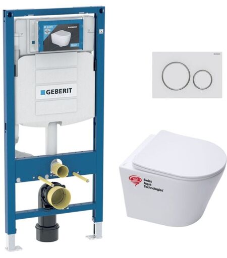 Geberit - Pack wc Bati + Cuvette Swiss Aqua technologies sans bride + Abattant soft close + Plaque (GebSATrimless-J)