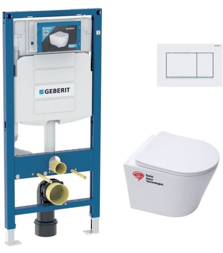 Pack wc Bati-support Geberit wc Swiss Aqua Technologies sans bride + Abattant softclose + Plaque (Geb sat Infinitio-K)