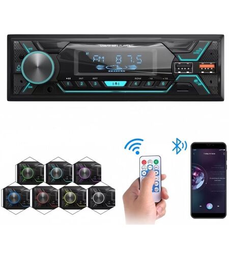 Essgoo - Autoradio 1DIN bt avec 7 couleurs Bluetooth mains libres lecteur MP3 usb sd aux fm MP3