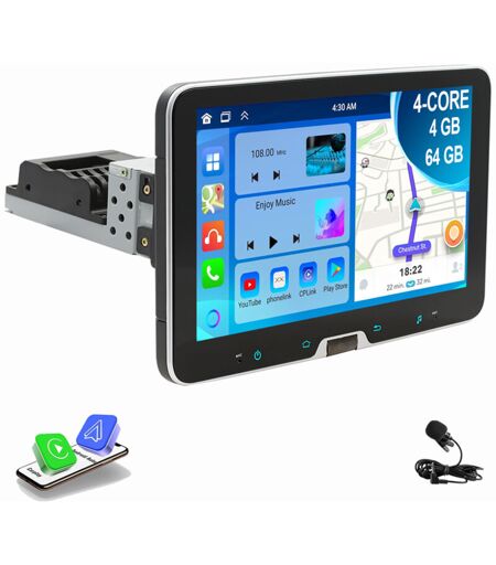 Essgoo - Autoradio 1 din 10,1' Android 14 Carplay gps rds bt Écran rotatif à 360°2+32G