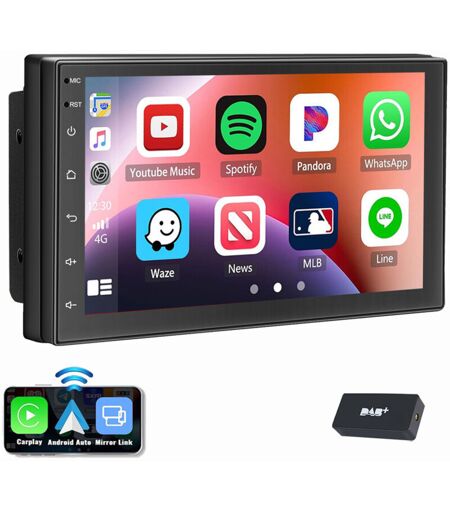 Caractéristiques : Autoradio Android 14 avec écran tactile IPS – Cet autoradio est doté d'une résolution de 1024 x 600, de 2/4 Go de RAM et de 32/64 Go de ROM, d'un écran tactile numérique IPS HD de 7 pouces, d'une prise en charge de la lecture vidéo HD 1080p pour une excellente visibilité et de plusieurs interfaces utilisateur bien conçues, ce qui en fait le choix idéal pour un autoradio. CarPlay sans fil et Android Auto : Plongez dans une expérience d'infodivertissement fluide et intuitive avec Apple CarPlay et Android Auto. Connectez votre iPhone à Apple CarPlay ou votre smartphone Android à Android Auto et accédez en toute sécurité à vos appels, SMS, navigation, musique et bien plus encore. Grâce à une utilisation intuitive via l'écran tactile ou la commande vocale, toutes les fonctions sont à portée de main tout en restant au volant en toute sécurité. Utilisez vos applications préférées et restez connecté à tout moment tout en gardant les yeux sur la route. Transformez votre ...