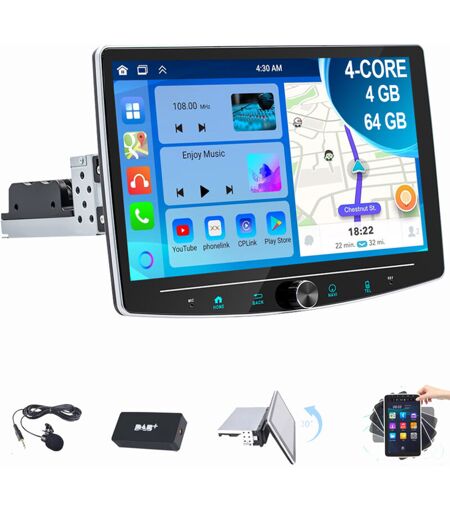 Essgoo - Autoradio Android 14 Apple Carplay gps Navi bt rds 1 din Écran rotatif à 360° 2+32G dab+