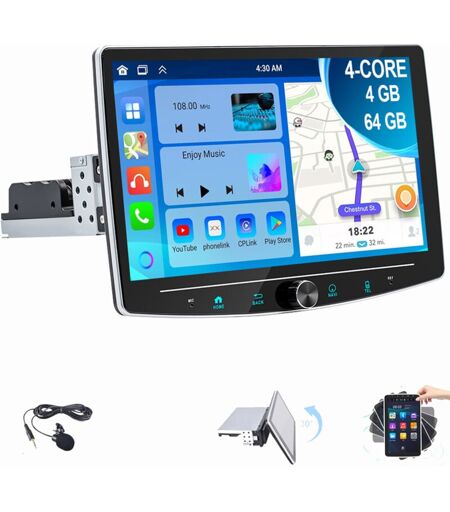 ESSGOO Autoradio Android 14 Apple Carplay GPS Navi BT RDS 1 DIN Écran rotatif à 360° 2+64G