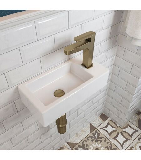 Deervalley - Vasque Lave Main - Vasque Suspendue Rectangulaire Blanche pour Salle de Bain avec Trou pour Robinet à Droite 36.5 x 18 x 9 cm