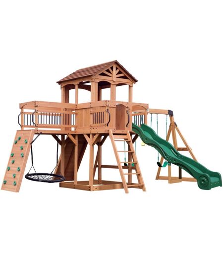 Backyard Discovery - Sterling Point Swing Set, Aire de Jeux en Bois Aire de Jeux Extérieur avec parois rocheuses, toboggan, balançoires Balancoire