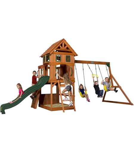 BACKYARD DISCOVERY Atlantic Aire de jeux en bois Aire de Jeux Extérieur avec balançoire / toboggan / bac de sable / mur d'escalade Balancoire Exterieur avec Toboggan,